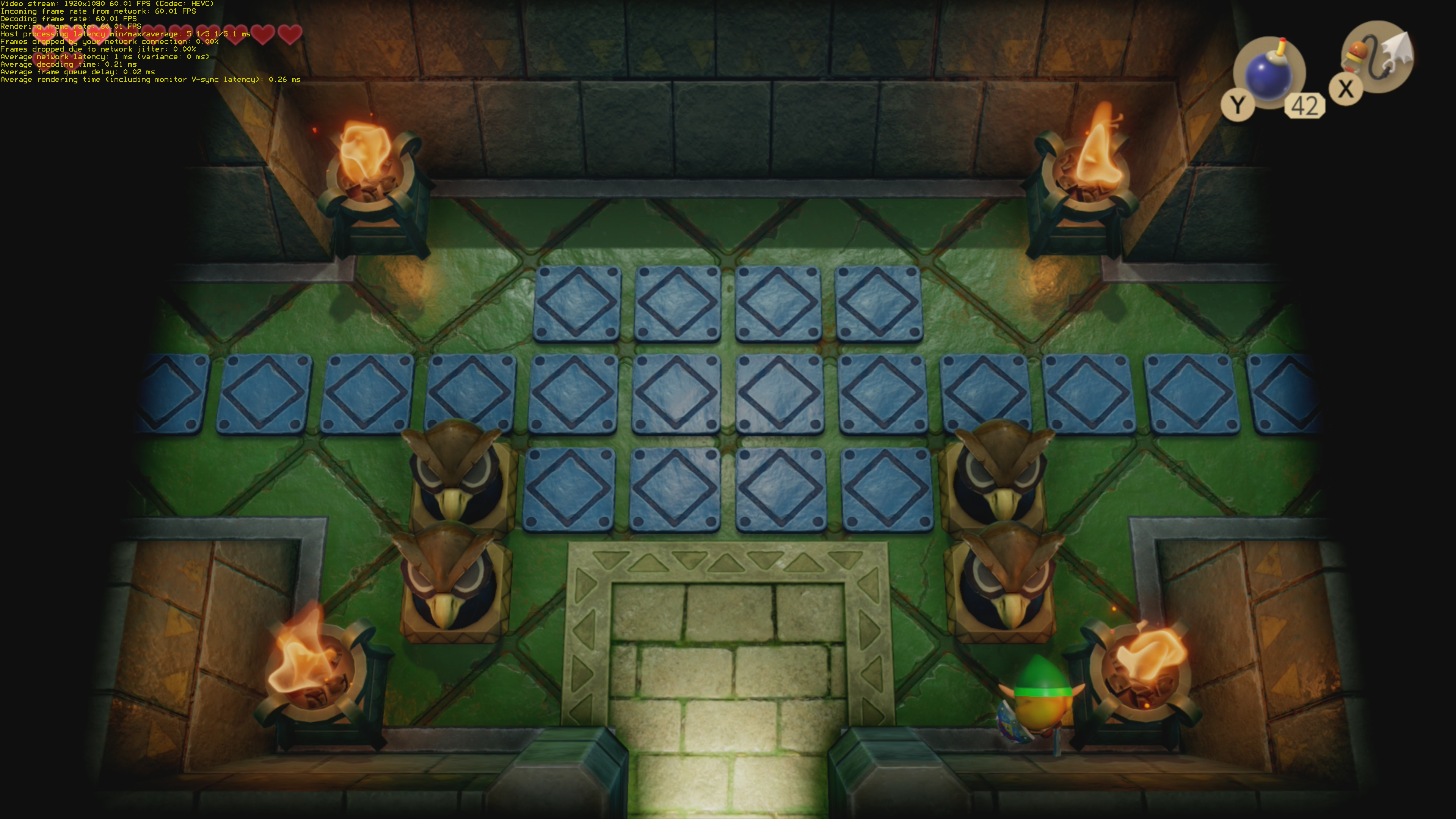 Due to that, there’s an input latency difference between the top and bottom of the screen. At 60Hz, this can be up to 16.67ms. Since Sunshine has to wait for a whole frame before sending it out, all my measurements in this blog post are relative to the bottom of the screen. I do this by moving Link as far to the bottom right of the screen as the game allows and pressing a button which makes him move. If you want to know top-screen latency, just add 16ms to my numbers. This can’t be improved, because most games on Switch are 60Hz only.