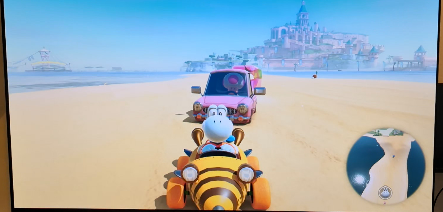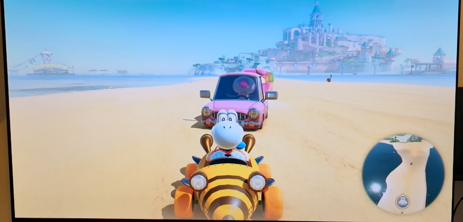 Modern Displays show images just like CRTs: Line by line, top to bottom. You can see what that looks like on my 240fps camera in the following frames, where I switched from the back camera to the front camera in Mario Kart World (click the image, it opens a viewer with multiple frames):