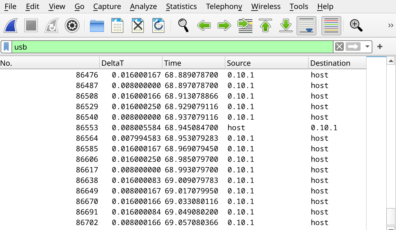 In the USB capture below you can see that it actually seems to toggle randomly between 62.5Hz and 125Hz: